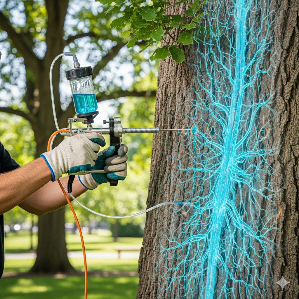 L’endoterapia cura le piante dall’interno, senza disperdere sostanze nell’ambiente circostante.